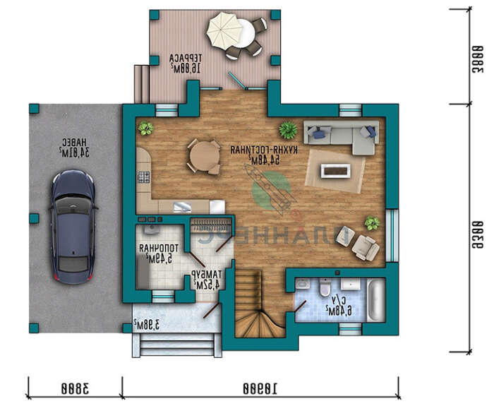 проект в зеркальном отображении позволит органично вписать дом в окружающий ландшафт.