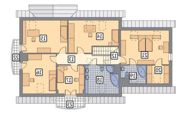 проект в зеркальном отображении позволит органично вписать дом в окружающий ландшафт.