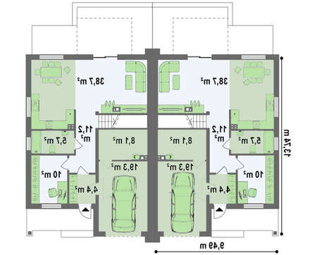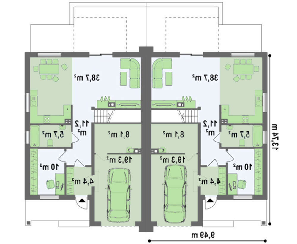 проект в зеркальном отображении позволит органично вписать дом в окружающий ландшафт.