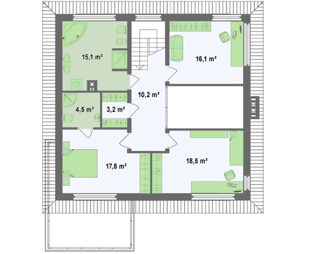 Проект двухэтажного загородного дома со вторым светом 4M642