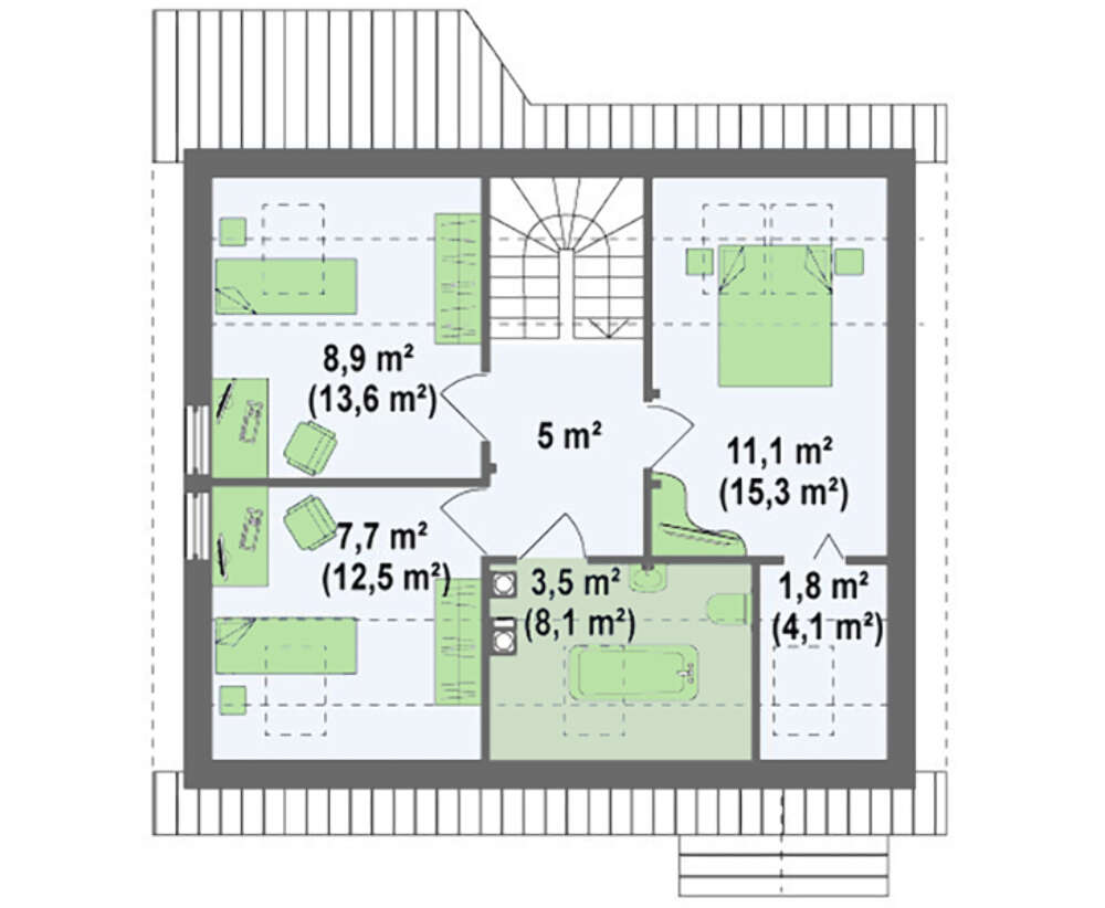 Проект содержит три раздела – Архитектурный, Конструктивный и Инженерный: водоснабжение, отопление, вентиляция, канализация, электроснабжение (приобретается за дополнительную плату) + Пояснительная записка.