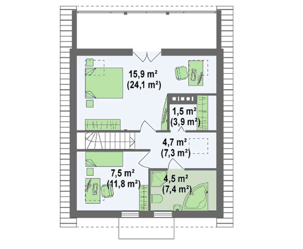 Проект содержит три раздела – Архитектурный, Конструктивный и Инженерный: водоснабжение, отопление, вентиляция, канализация, электроснабжение (приобретается за дополнительную плату) + Пояснительная записка.