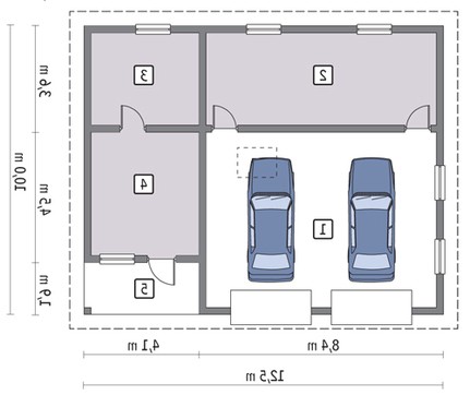 Проект гаража на 2 машины с жилыми помещениями 4M6073