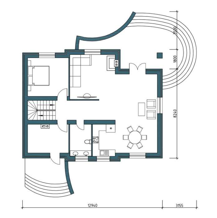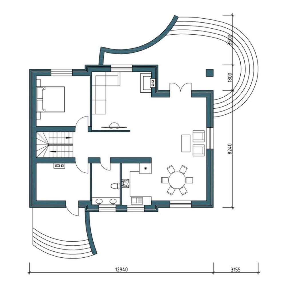 Проект изысканного загородного коттеджа необычной формы 4M1402