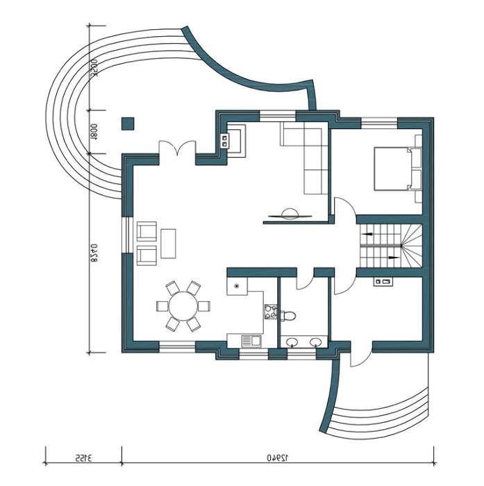 проект в зеркальном отображении позволит органично вписать дом в окружающий ландшафт.