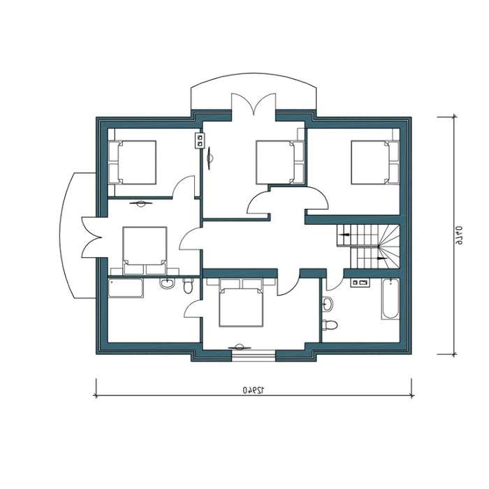 Четырех санитарных комнат будет вполне достаточно для свершения естественных потребностей многочисленных обитателей. А красивые балкончики в белом обрамлении поспособствуют созданию романтического настроения для наблюдения за закатом.