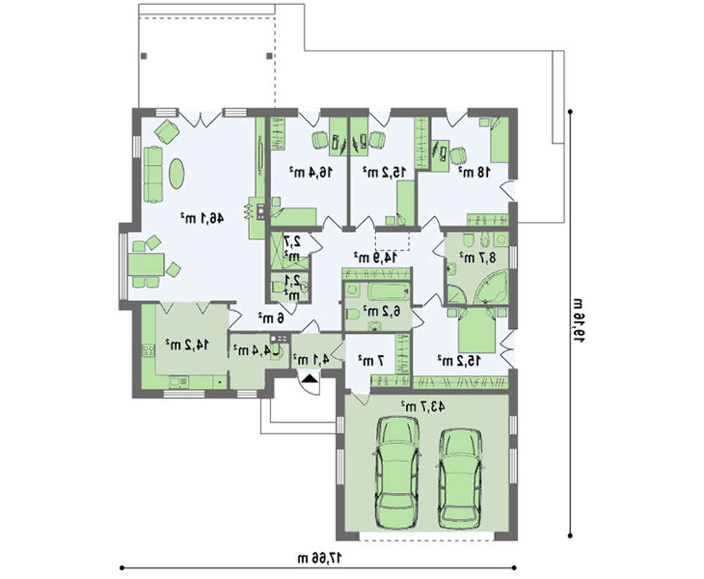 • 4M386 Проект классического одноэтажного дома с гаражом для двух автомобилей
