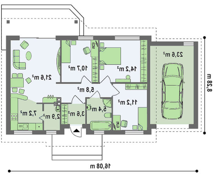 • 4M476G Проект комфортного одноэтажного коттеджа с гаражом и небольшой террасой