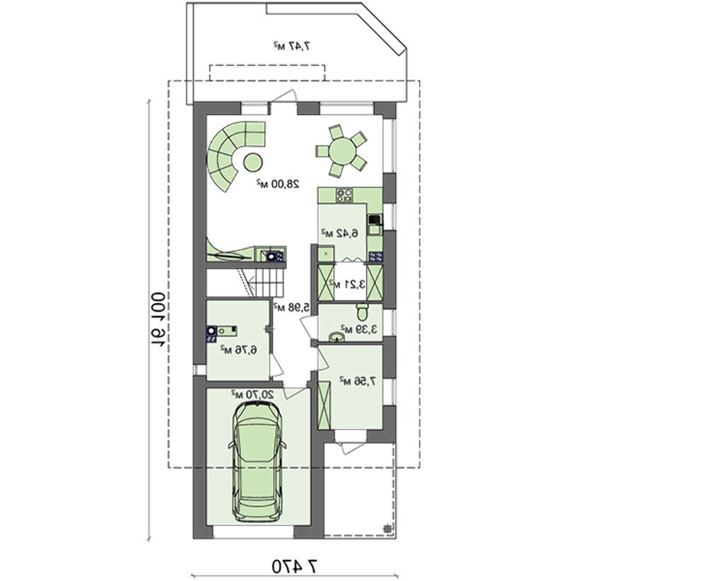проект в зеркальном отображении позволит органично вписать дом в окружающий ландшафт.