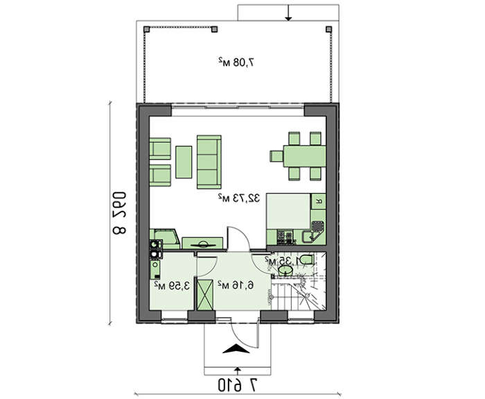 С обратной стороны здания, той, которая противоположная парадной, находится вместительного размера терраса. На усмотрение хозяина она может быть использована в разных целях. Полезным для здоровья будет полученный от рассеянного солнечного света загар. Трудно найти более приятное занятие, чем в хорошую погоду всей семьей вкусно отобедать в окружении шелеста листвы, под аккомпанемент птичьего пения и приятных ароматов цветов. Хорошая идея — шашлыки, их можно тут же приготовить на открытом огне мангала.