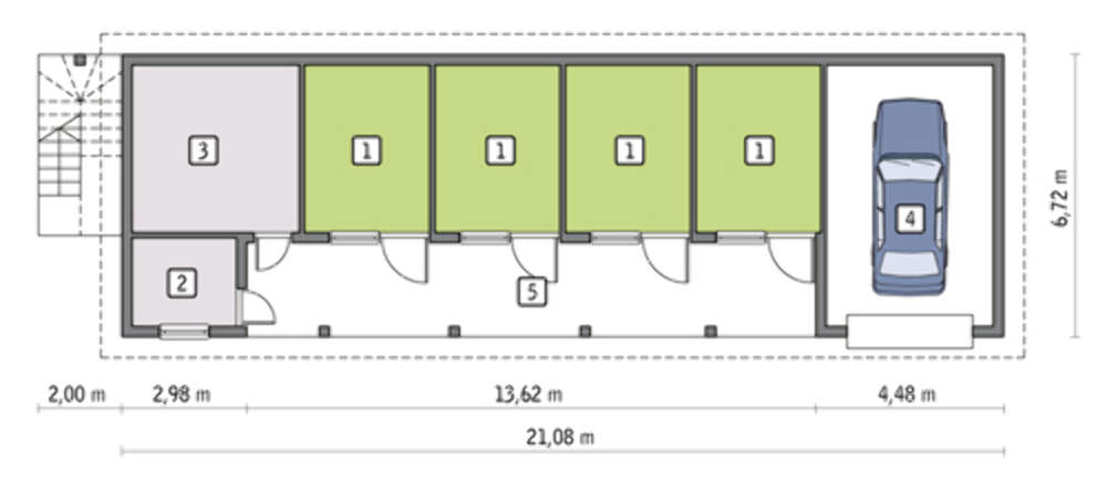 Проект содержит три раздела – Архитектурный, Конструктивный и Инженерный: водоснабжение, отопление, вентиляция, канализация, электроснабжение (приобретается за дополнительную плату) + Пояснительная записка.
