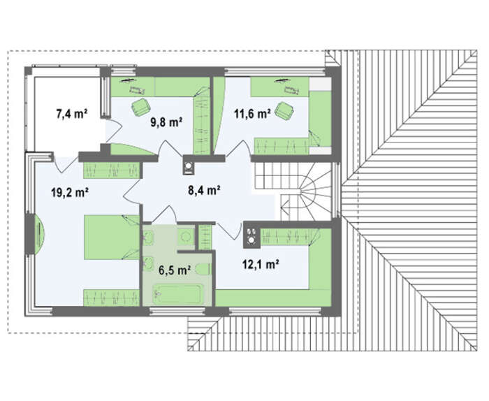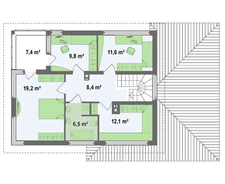 Проект коттеджа с интересным угловым балконом