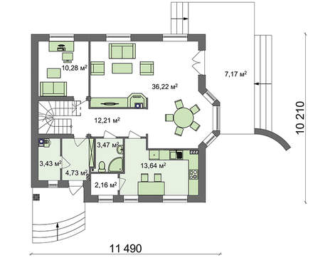 Проект содержит три раздела – Архитектурный, Конструктивный и Инженерный: водоснабжение, отопление, вентиляция, канализация, электроснабжение (приобретается за дополнительную плату) + Пояснительная записка.