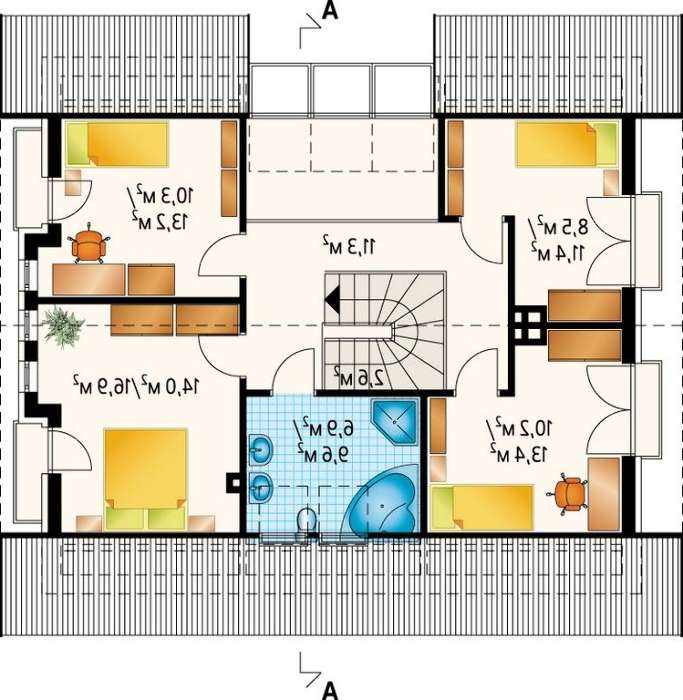 проект в зеркальном отображении позволит органично вписать дом в окружающий ландшафт.