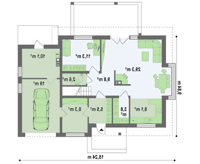 Проект содержит три раздела – АрхитектурныйКонструктивный и Инженерный: водоснабжение, отопление, вентиляция, канализация, электроснабжение (приобретается за дополнительную плату) + Пояснительная записка.