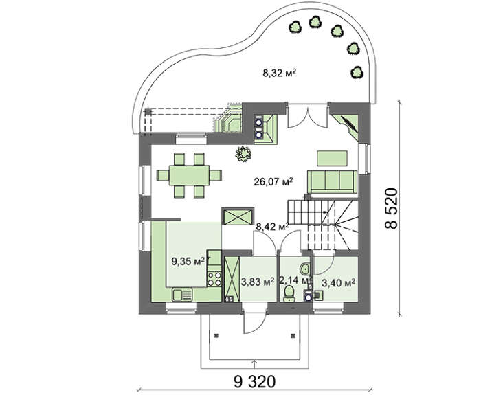 • 4M360 Проект коттеджа с печью-барбекю на террасе