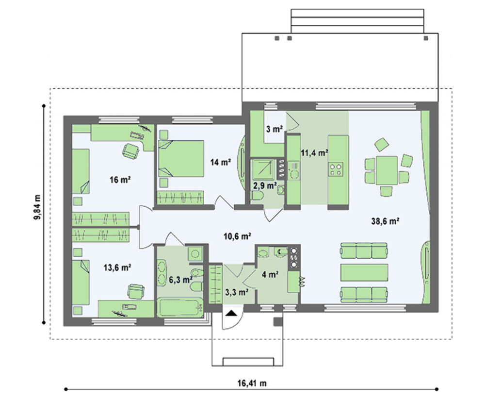 Проект коттеджа с тремя спальнями с чердаком 4M056