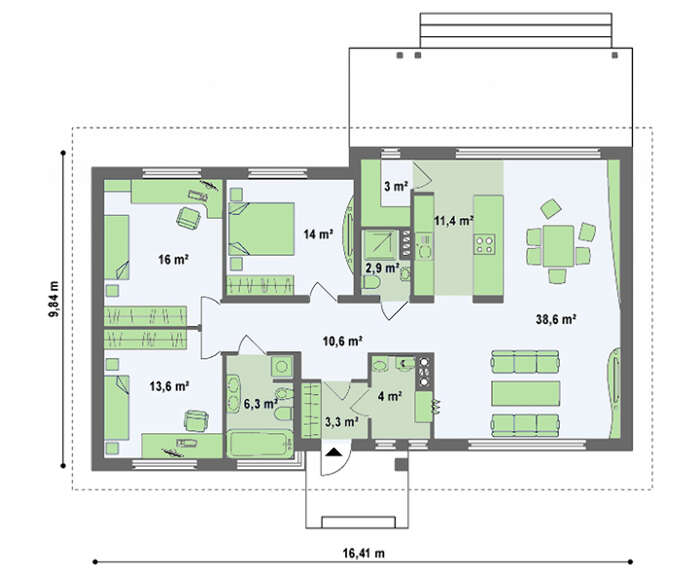 • 4M056 Проект коттеджа с тремя спальнями с чердаком