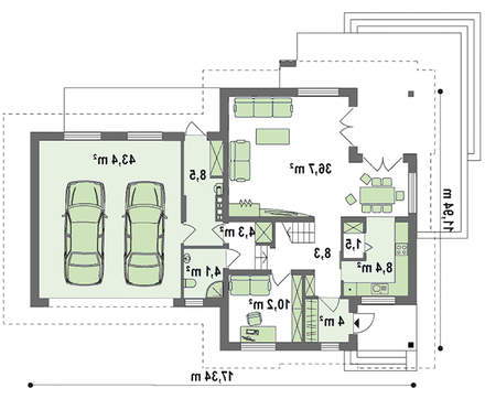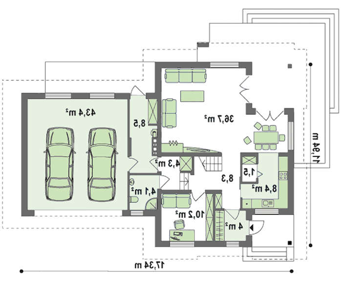 проект в зеркальном отображении позволит органично вписать дом в окружающий ландшафт.