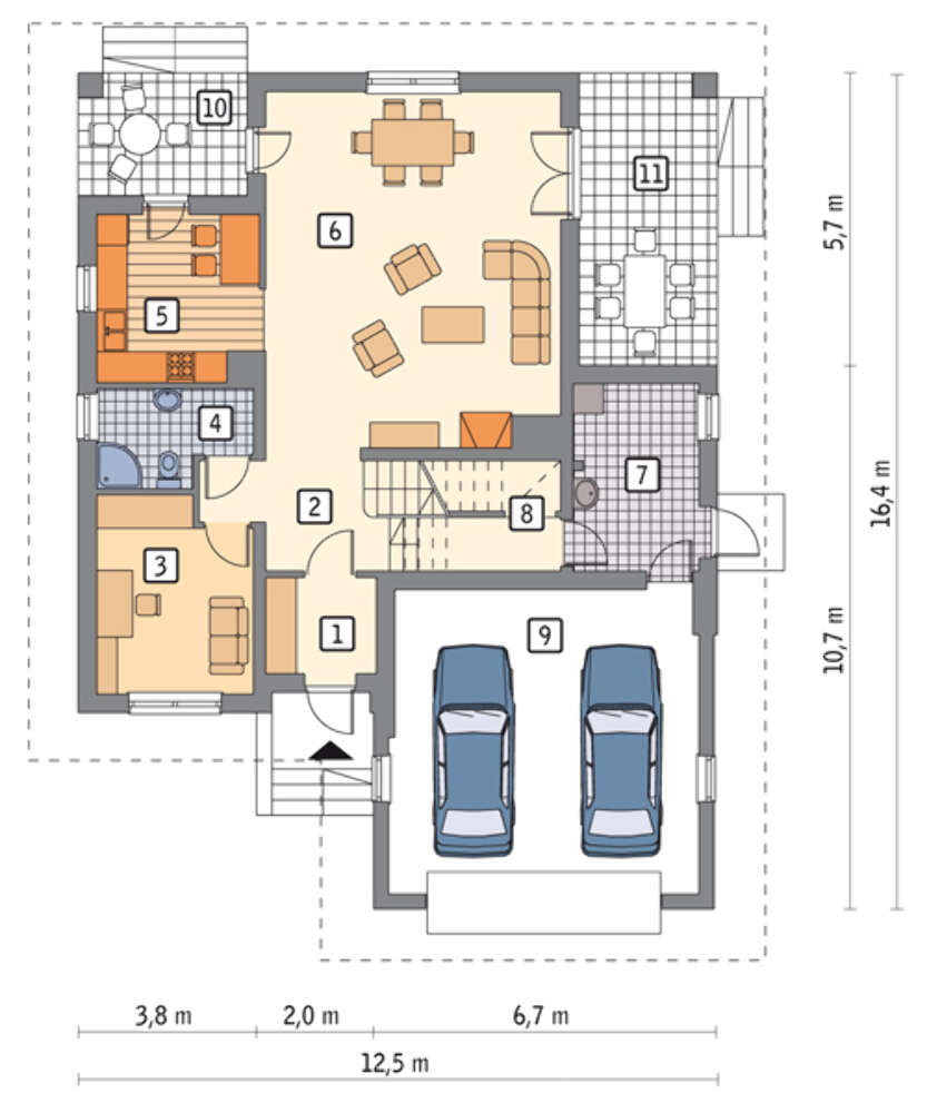 • 4M6196 Проект красивого жилого дома с двумя верандами