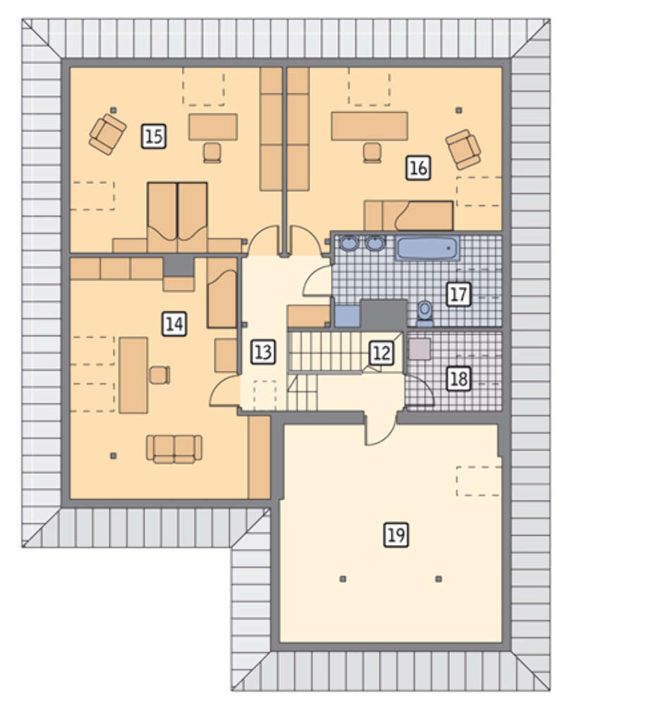 Проект содержит три раздела – АрхитектурныйКонструктивный и Инженерный: водоснабжение, отопление, вентиляция, канализация, электроснабжение (приобретается за дополнительную плату) + Пояснительная записка.