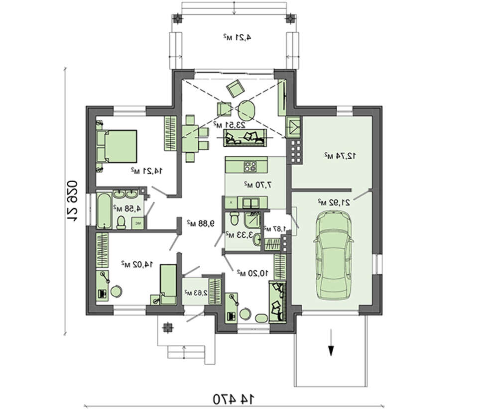 • 4M645 Проект красочного одноэтажного дома с облицовкой декоративным камнем общей площадью 130 кв. м, жилой 61 кв. м