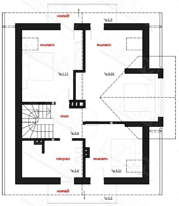проект в зеркальном отображении позволит органично вписать дом в окружающий ландшафт.