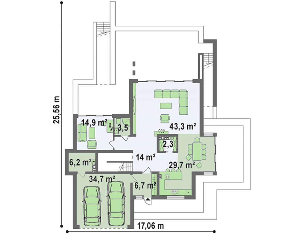Площадь цокольного этажа:127.00 м2