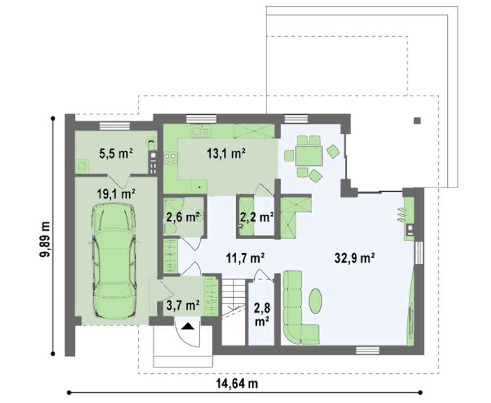 • 4M372 Проект небольшого дома с мансардой и гаражом с левой стороны