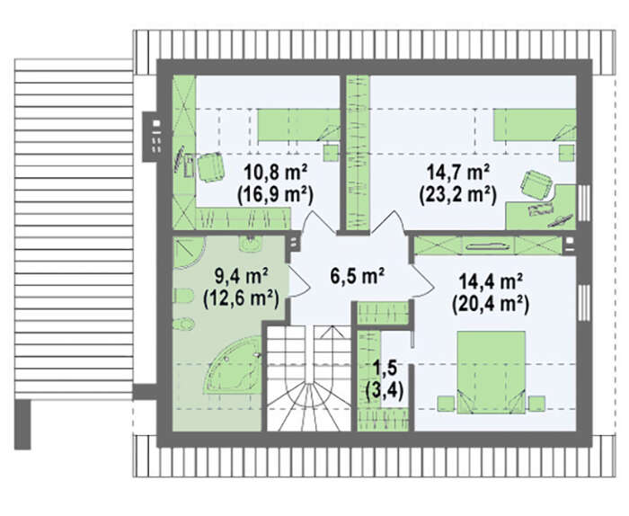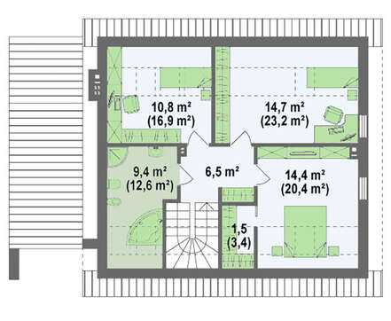 Проект небольшого дома с мансардой и гаражом с левой стороны 4M372