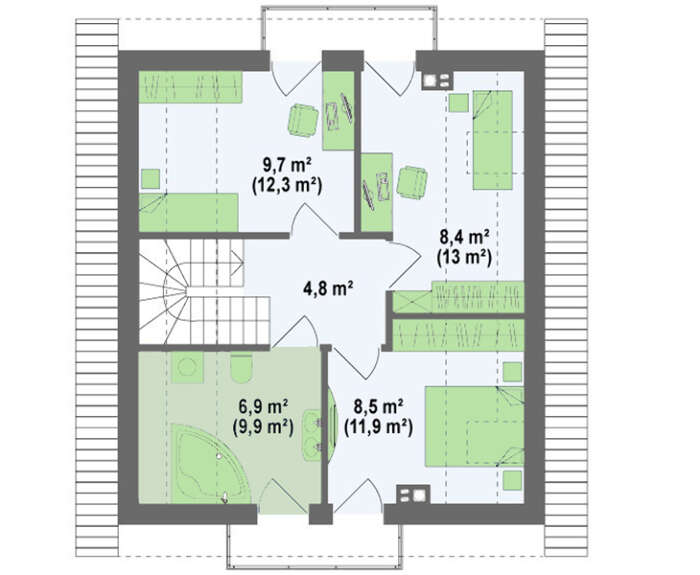 Площадь крыши:125.00 м2