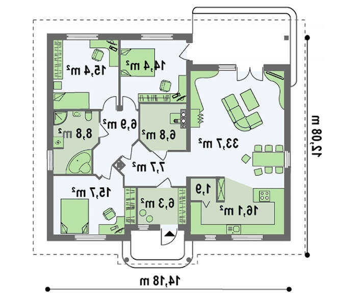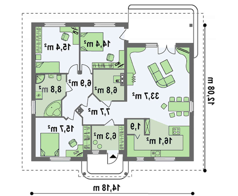 проект в зеркальном отображении позволит органично вписать дом в окружающий ландшафт.
