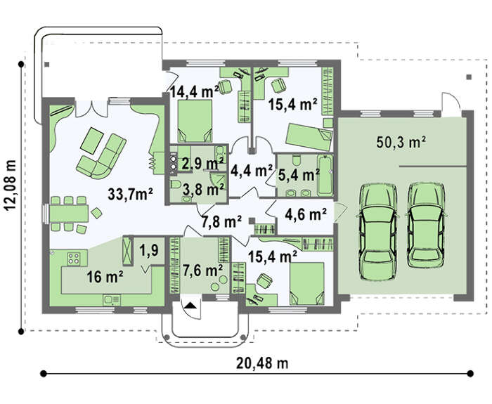Проект одноэтажного коттеджа с гаражом в классическом стиле 4M512