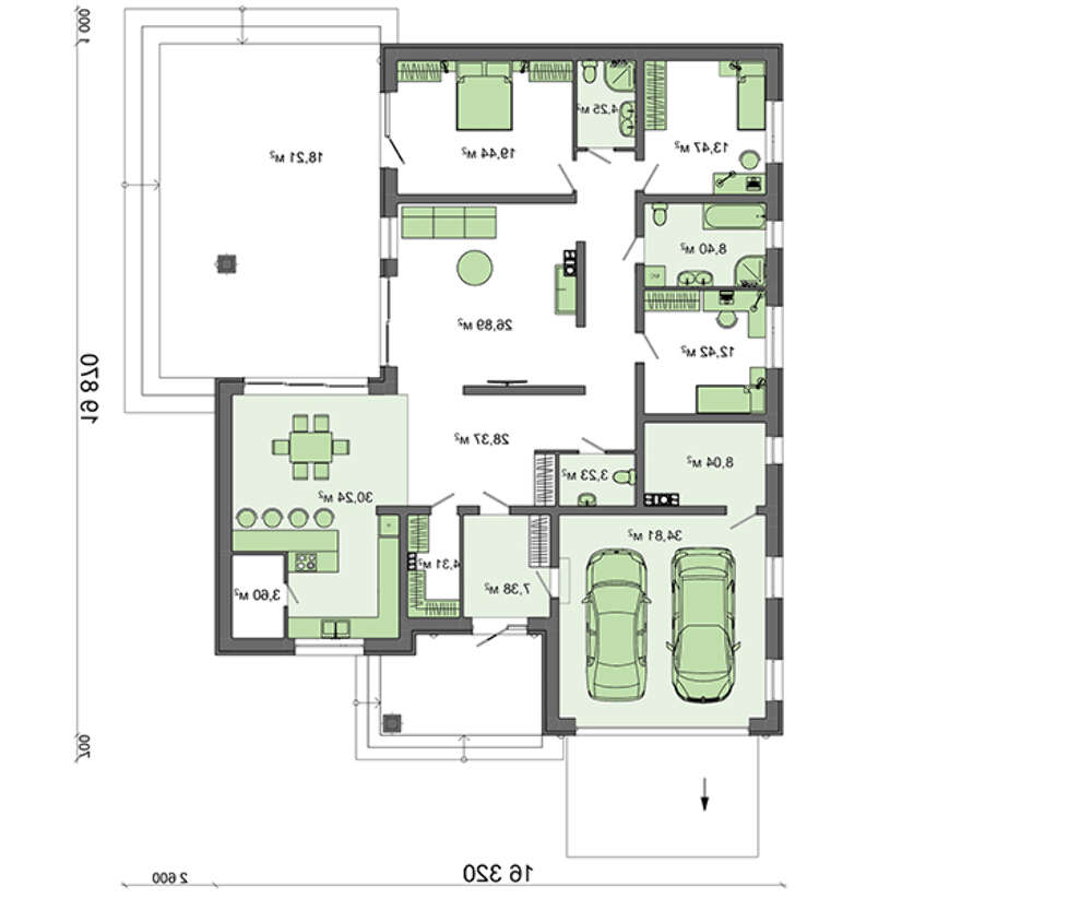 проект в зеркальном отображении позволит органично вписать дом в окружающий ландшафт.