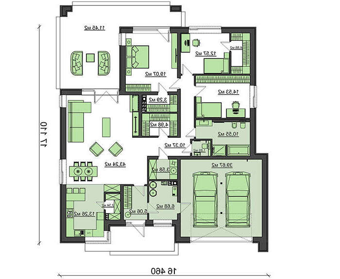 • 4M7128 Проект одноэтажного жилого дома с белым фасадом