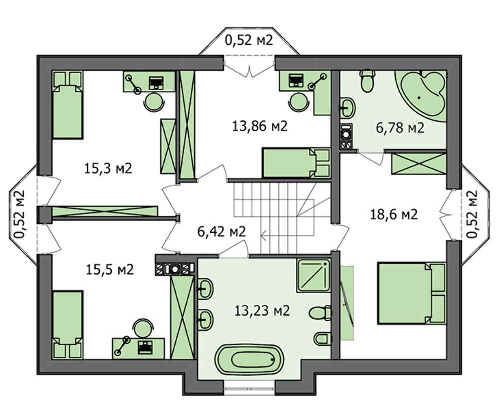 Проект содержит три раздела – Архитектурный, Конструктивный и Инженерный: водоснабжение, отопление, вентиляция, канализация, электроснабжение (приобретается за дополнительную плату) + Пояснительная записка.