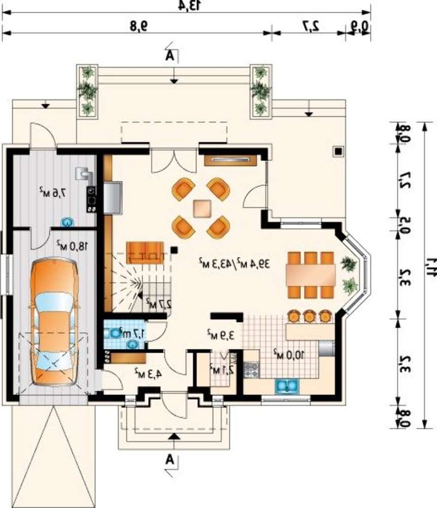 проект в зеркальном отображении позволит органично вписать дом в окружающий ландшафт.