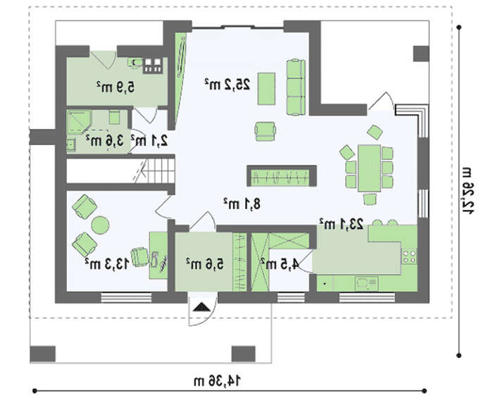 Особенность первого этажа в уединенном помещение, которое ждет своих хозяев. Ими могут быть шумные дети, строгий папа или добрейший души бабушка с дедушкой, старые ножки которых не желают прыгать по высоким ступенькам лестницы.