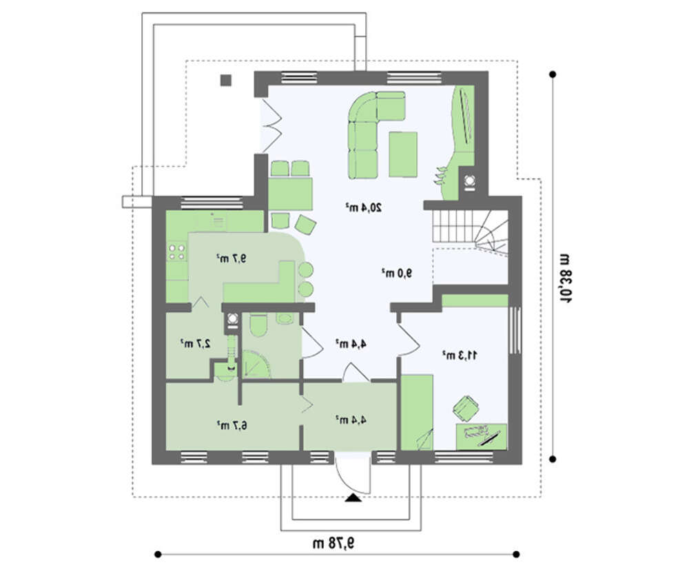 проект в зеркальном отображении позволит органично вписать дом в окружающий ландшафт.