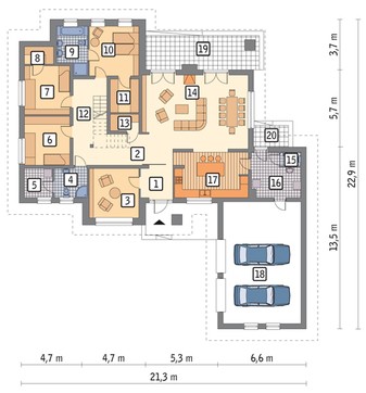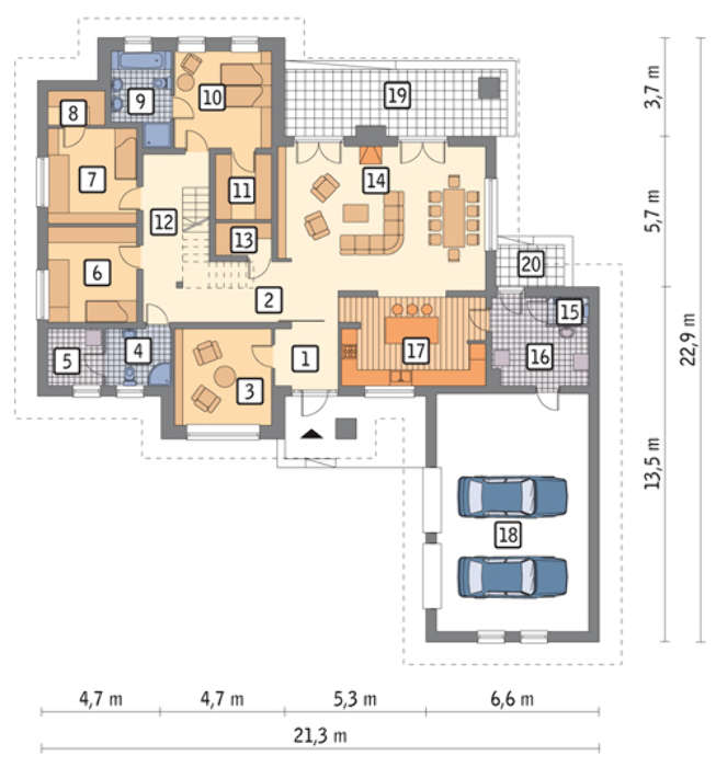 Проект содержит три раздела – АрхитектурныйКонструктивный и Инженерный: водоснабжение, отопление, вентиляция, канализация, электроснабжение (приобретается за дополнительную плату) + Пояснительная записка.
