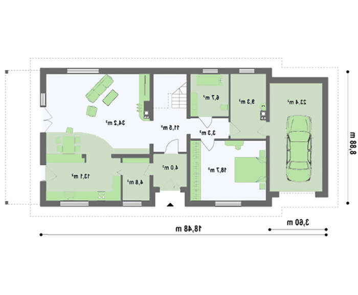 • 4M522 Проект просторного классического коттеджа с мансардой и 2 спальнями