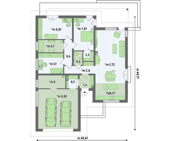 проект в зеркальном отображении позволит органично вписать дом в окружающий ландшафт.
