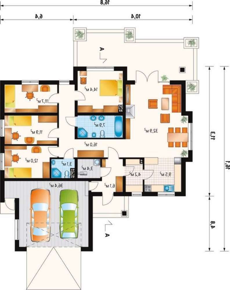• 4M3427 Проект просторного одноэтажного дома