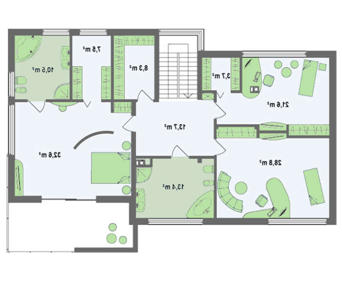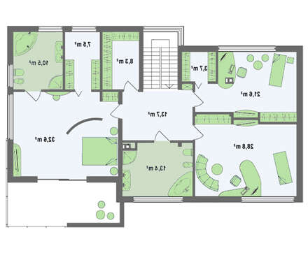 проект в зеркальном отображении позволит органично вписать дом в окружающий ландшафт.
