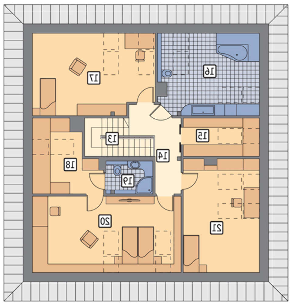 проект в зеркальном отображении позволит органично вписать дом в окружающий ландшафт.