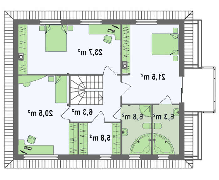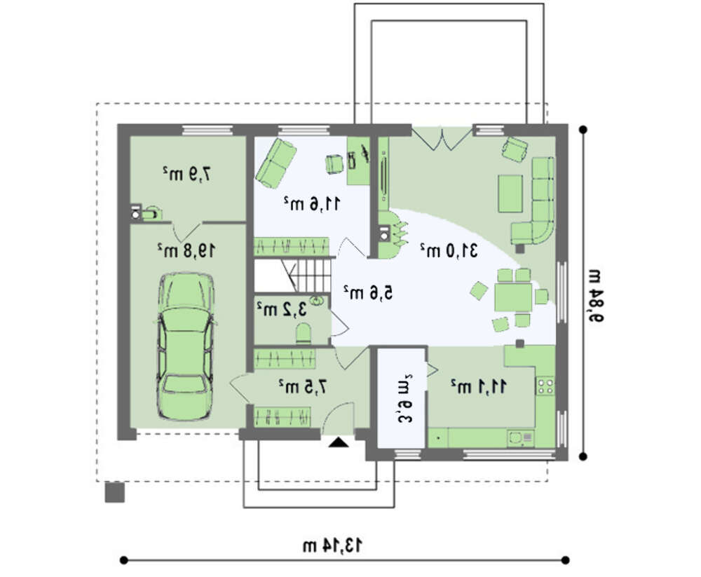 проект в зеркальном отображении позволит органично вписать дом в окружающий ландшафт.