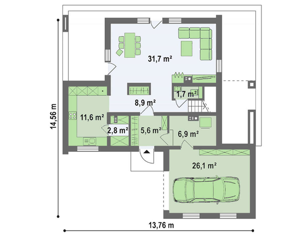 • 4M115 Проект стильного современного коттеджа с мансардой