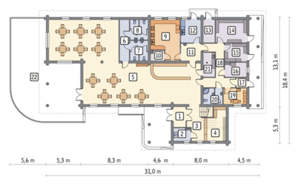 Проект содержит три раздела – Архитектурный, Конструктивный и Инженерный: водоснабжение, отопление, вентиляция, канализация, электроснабжение (приобретается за дополнительную плату) + Пояснительная записка.