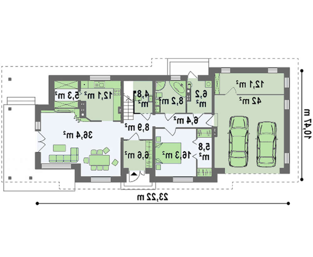 проект в зеркальном отображении позволит органично вписать дом в окружающий ландшафт.