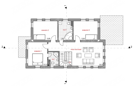 | Кровля: | керамическая черепица, металлочерепица, цементно-песчаная черепица |